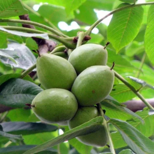 Орехи — съедобные, продолговатые, с плотной скорлупой и ядром приятного вкуса. Идеален как для приусадебного участка, так и для закладки мини-садов в климате, где обычный грецкий орех вымерзает.