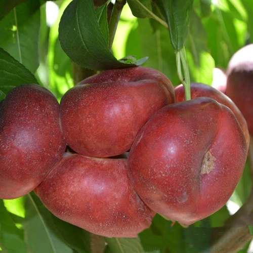 Плоды нектарина Концеттина радуют глаз своими впечатляющими размерами — вес одного плода колеблется от 100 до 120 граммов. На 80-100% поверхность плодов покрыта ярким красным румянцем, который в полной мере раскрывает свою красивую вишневую окраску при созревании. Форма плода — плоский (инжирный), что делает его еще более привлекательным на вид.