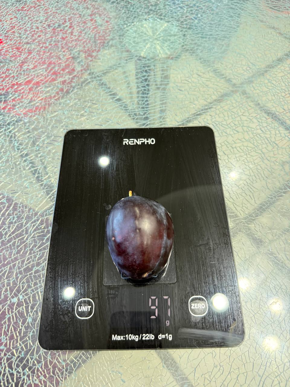 - Округло-овальной, асимметричной формы, тёмно-фиолетового цвета, покрыты восковым налётом. Мякоть приятная, плотная и сочная, жёлтого цвета. Косточка легко извлекается;